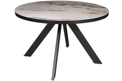 Ультрасовременная модель круглого стола! Достаточно массивная столешница поддерживается широкими металлическими ножками, красиво сходящимися в ее центр. Большая вставка легко увеличивает круглую столешницу, превращая ее в овальную, очень удобную для размещения 8 человек.