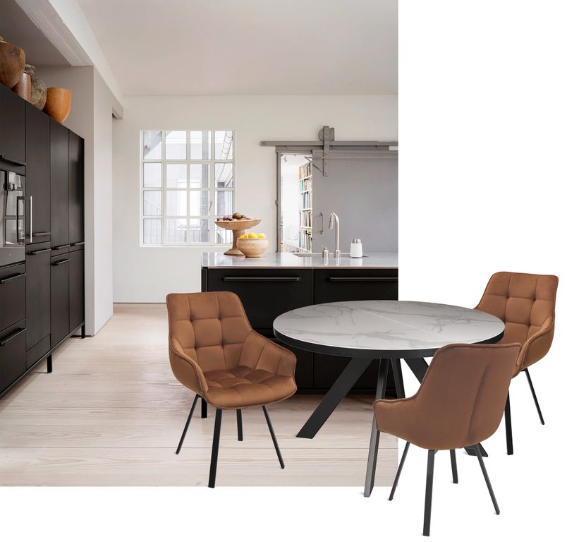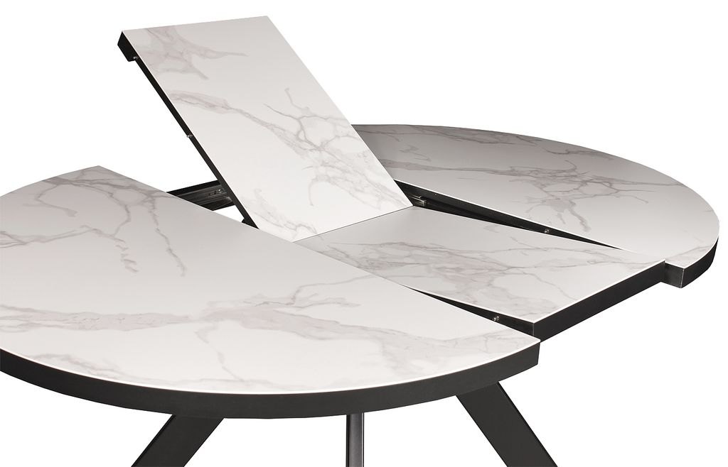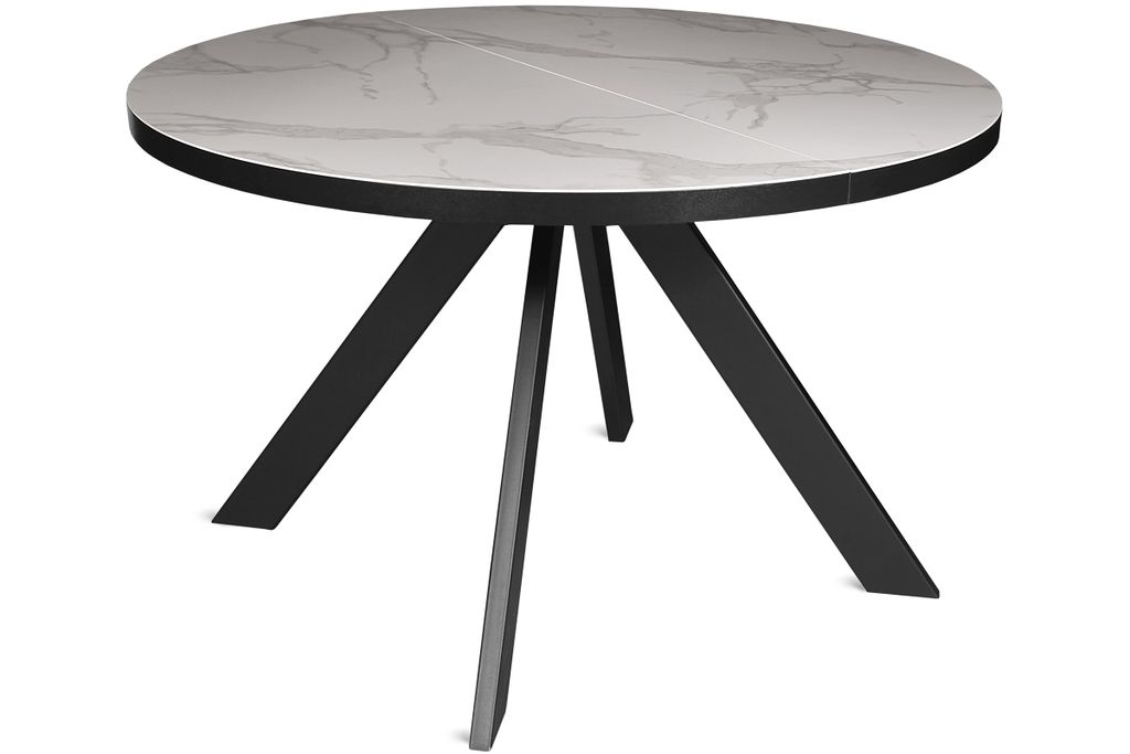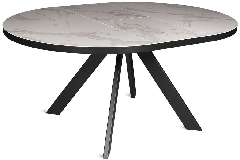 Ультрасовременная модель круглого стола! Достаточно массивная столешница поддерживается широкими металлическими ножками, красиво сходящимися в ее центр. Большая вставка легко увеличивает круглую столешницу, превращая ее в овальную, очень удобную для размещения 8 человек.