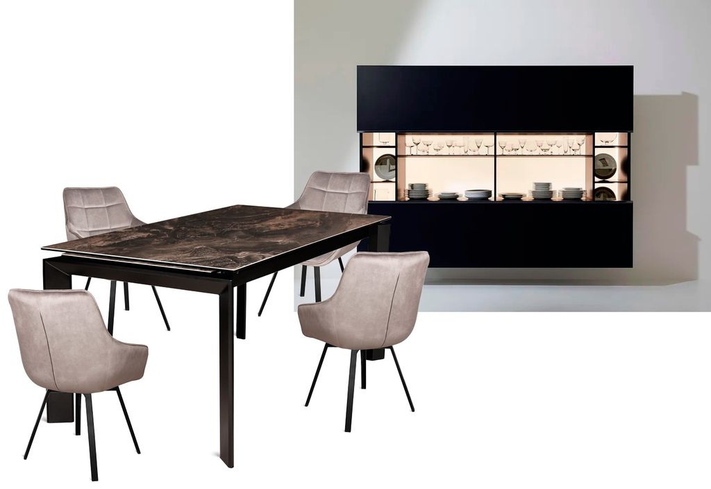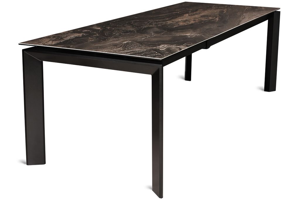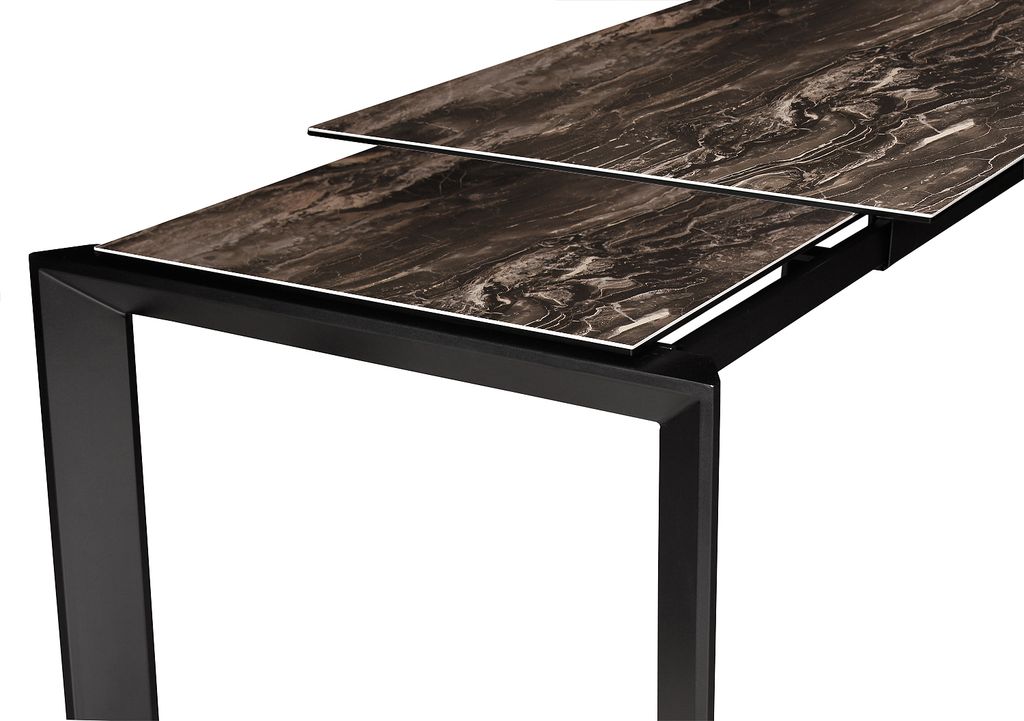 Тема в дизайне столов, поддержанная всеми итальянскими конструкторами и получившая реальное воплощение только сегодня - в эпоху высокотехнологичных материалов и механизмов раздвижения столешниц. В данном случае столешница представляет собой композит 3-миллимитрового слоя дорогой иитальянской керамики и закаленного стекла. Уникальный механизм раздвижения позволяет с невероятной легкостью увеличить стол на 70 см!