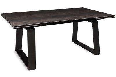Главная идея этого итальянского дизайна - в контрасте подчеркнуто строгой геометрии подстолья и роскошного керамического покрытия столешницы. Стол оснащен надежным высокотехнологичным алюминиевым механизмом выдвижения двух больших торцевых керамических вставок. Итальянские керамические покрытия очень красивы. Специальные технологии позволяют наклеивать тонкие керамические плиты на закаленное стекло, имеющее с керамикой одинаковую плотность материала, и использовать полученный композит для ультрасовременных дорогих интерьеров.