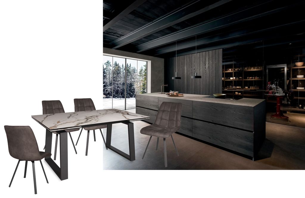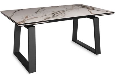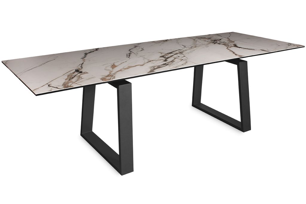 Главная идея этого итальянского дизайна - в контрасте подчеркнуто строгой геометрии подстолья и роскошного керамического покрытия столешницы. Стол оснащен надежным высокотехнологичным алюминиевым механизмом выдвижения двух больших торцевых керамических вставок. Итальянские керамические покрытия очень красивы. Специальные технологии позволяют наклеивать тонкие керамические плиты на закаленное стекло, имеющее с керамикой одинаковую плотность материала, и использовать полученный композит для ультрасовременных дорогих интерьеров.