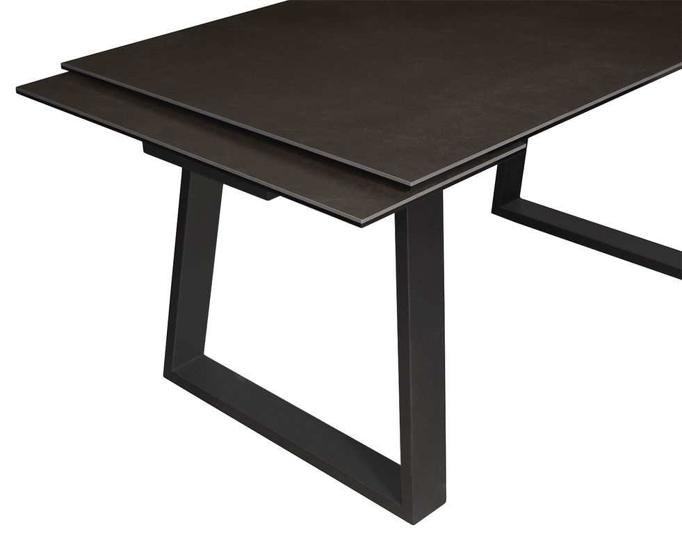 Главная идея этого итальянского дизайна - в контрасте подчеркнуто строгой геометрии подстолья и роскошного керамического покрытия столешницы. Стол оснащен надежным высокотехнологичным алюминиевым механизмом выдвижения двух больших торцевых керамических вставок. Итальянские керамические покрытия очень красивы. Специальные технологии позволяют наклеивать тонкие керамические плиты на закаленное стекло, имеющее с керамикой одинаковую плотность материала, и использовать полученный композит для ультрасовременных дорогих интерьеров.