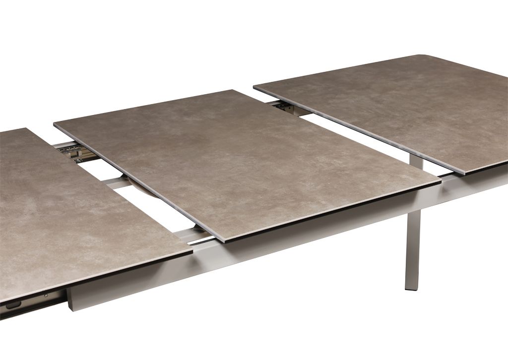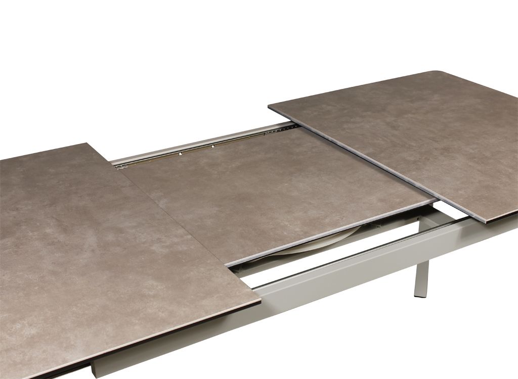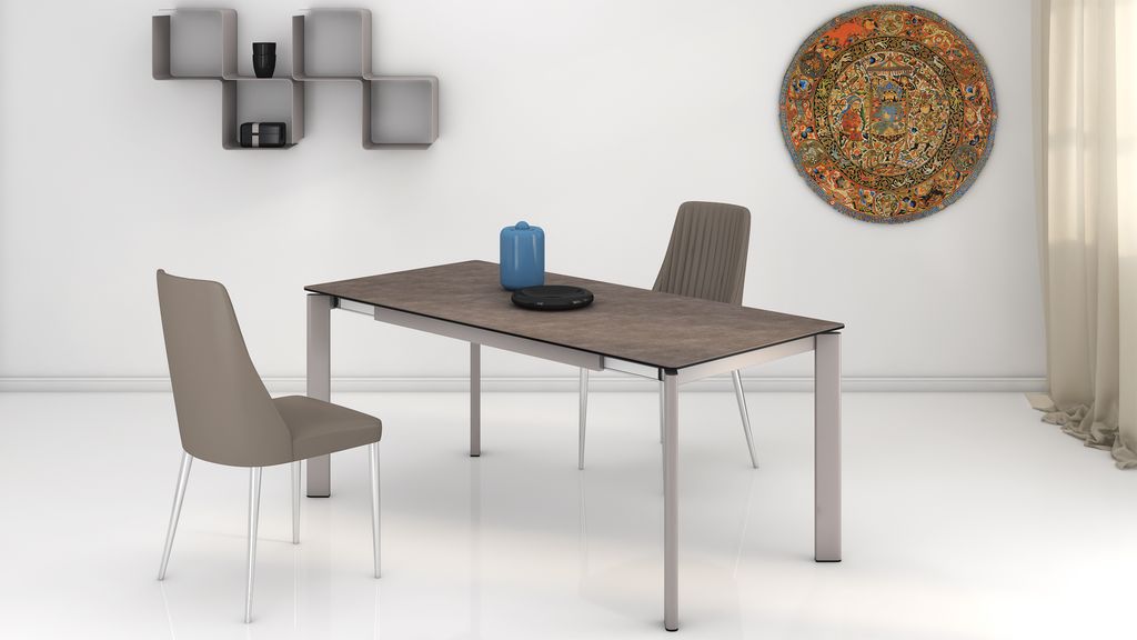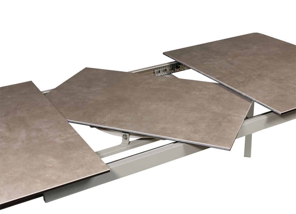 Модный и практичный дизайн с точки зрения обтекаемости всех углов и острых ребер. Высокотехнологичный, полностью автоматический, механизм раздвижения двух половин подстолья и столешницы открывает хранящуюся внутри большую вставку, увеличивающую керамическое полотно столешницы на 50 см. Безусловный фаворит современного кухонного интерьера!