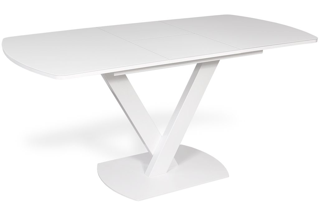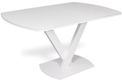 Стильная и визуально облегченная модель кухонного стола. Обладает большой устойчивостью за счет тяжелой литой металлической базы. Столешница, покрытая стеклом, оснащена механизмом центрального раздвижения "бабочка", увеличивающим стеклянную поверхность стола на 40 см за счет стеклянной вставки. Конструкция подстолья и форма столешницы очень удобны для размещения вокруг стола.