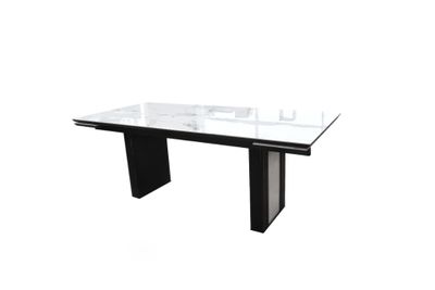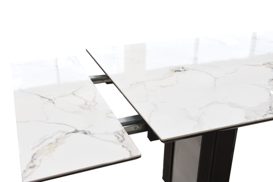Стол Джорджио. Размер 180, две боковые вставки по 30 см. Ширина 90 см. Столешница. Материал исполнения: керамогранит или компакт плита 3 мм. Механизм торцевой с плавным подъемом вставки. Подстолье: МДФ в пленке ПВХ - 2 стандартных цвета пленки: глянцевый белый и глянцевый черный. Рама металл. Порошковая покраска белый муар или черный муар. Опора металл. Вставка керамогранит в цвет столешницы.