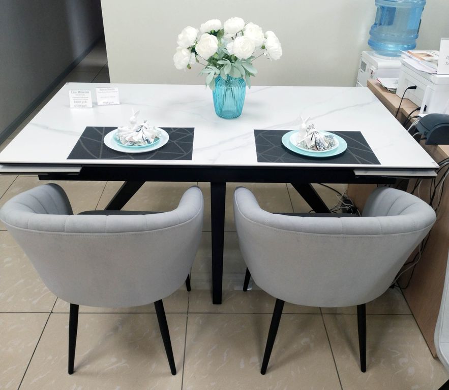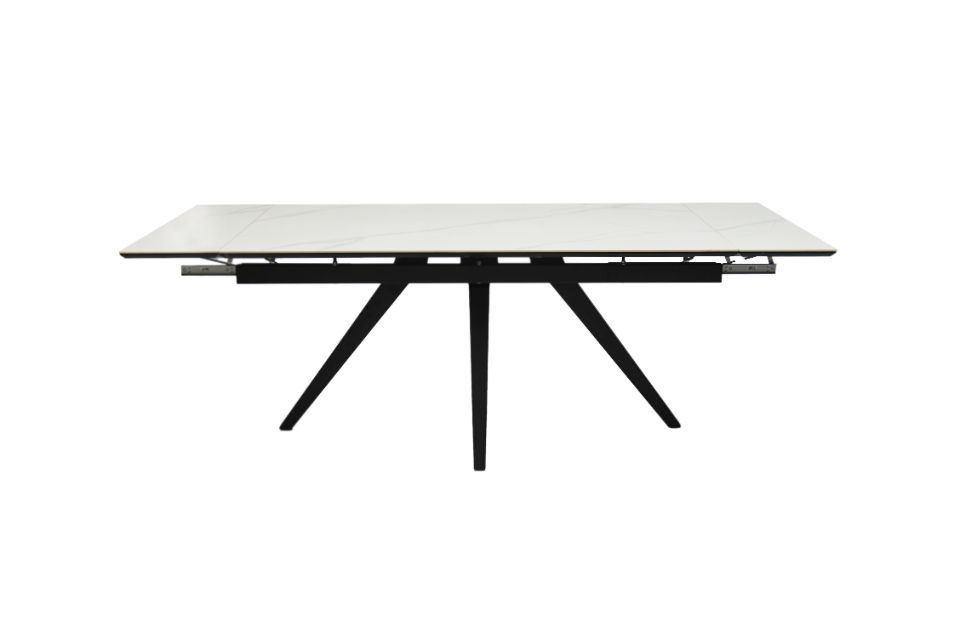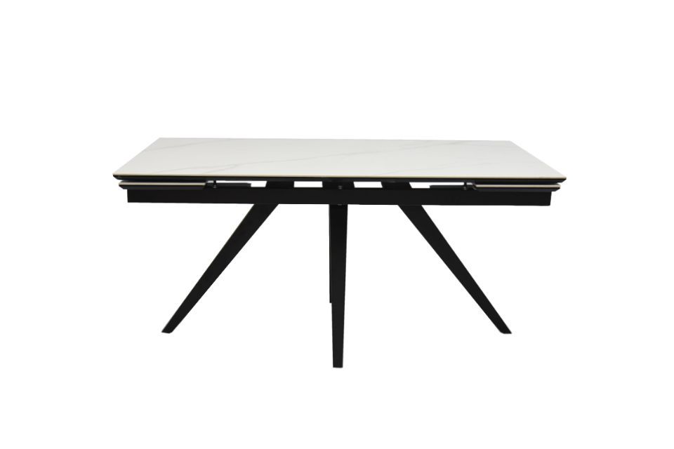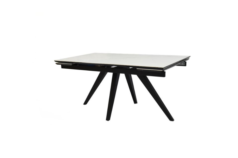 Стол Юпитер. Размер 160, две боковые вставки по 30 см. Ширина 90 см. Столешница. Материал исполнения: керамогранит, компакт плита 3 мм. Механизм торцевой с плавным подъемом вставки. Подстолье: МДФ в пленке ПВХ - 2 стандартных цвета пленки: глянцевый белый и глянцевый черный. Рама металл. Порошковая покраска белый муар или черный муар. Опора металл белый муар или черный муар.