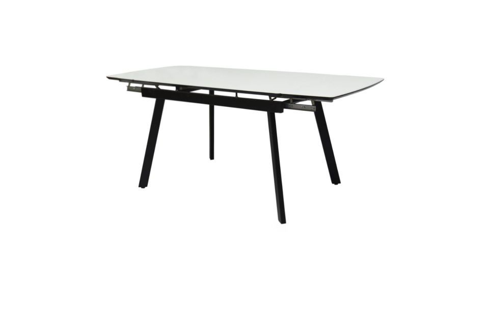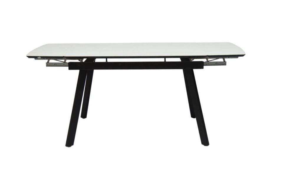 Стол Мадрид люкс. Размер 180, две боковые вставки по 30 см. Ширина 90 см. Столешница. Материал исполнения: керамогранит, стекло, пластик 0,6 мм, компакт плита 3 мм, фотопечать. Механизм торцевой с плавным подъемом вставки. Подстолье: МДФ в пленке ПВХ - 2 стандартных цвета пленки: глянцевый белый и глянцевый черный. Рама металл. Порошковая покраска белый муар или черный муар. Опора металл белый муар или черный муар.