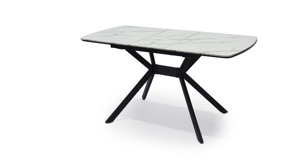 Стол Олимп. Размер 114, центральная вставка 32 см. Ширина 76 см. Столешница. Материал исполнения: керамогранит, стекло, пластик 0,6 мм, компакт плита 3 мм, фотопечать. Механизм вставки бабочка. Подстолье: МДФ в пленке ПВХ - 2 стандартных цвета пленки: глянцевый белый и глянцевый черный. Рама металл. Порошковая покраска белый муар или черный муар. Опора металл белый муар или черный муар.